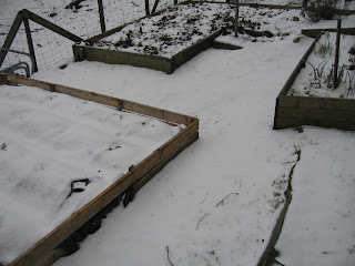 Snø i kjøkkenhagen gjør godt for nye jordbærplanter...